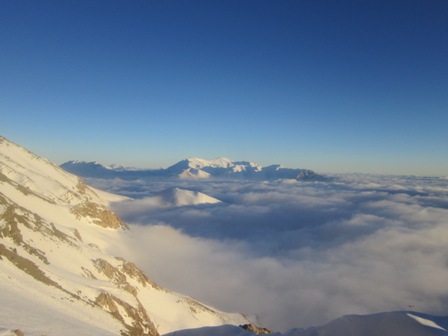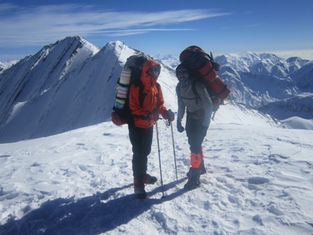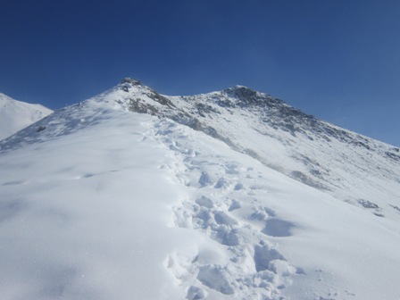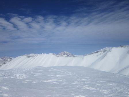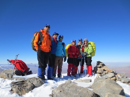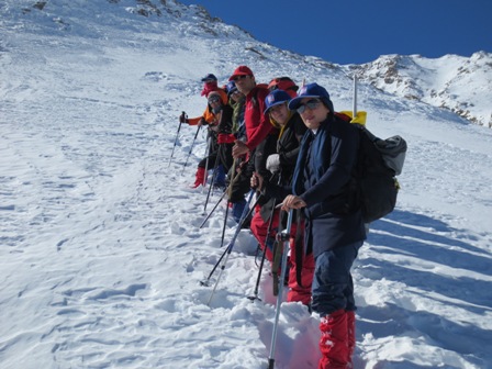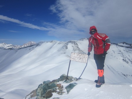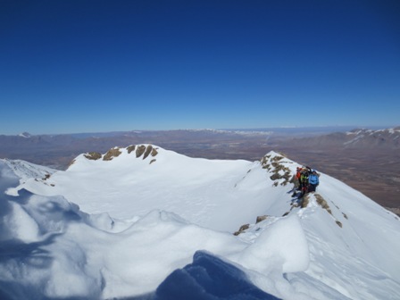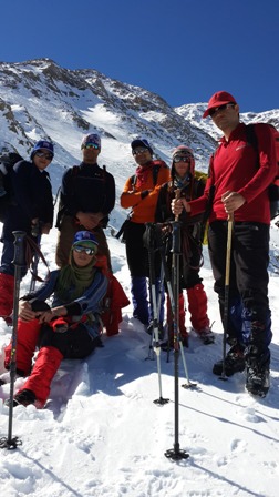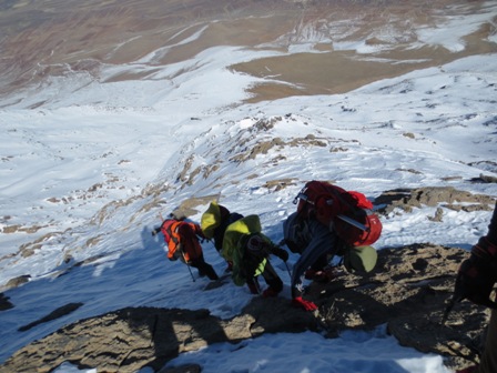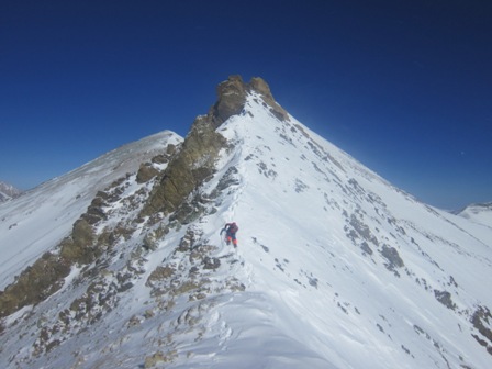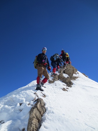 پس از صرف صبحانه و آماده شدن ساعت 8 به سمت قله حرکت نمودیم ، پس از چند استراحت کوتاه در بین مسیر و گذشتن از تیغه های بسیار زیبا ، زیر قله مربی گرامی برنامه آموزش های در مورد نحوه گام برداری روی برف با کرامپون از جمله روش فرانسوی ، ساعت 3 و ... را آموزش دادند و نهایتاً ساعت50/14 بر روی قله، استوار ایستادیم .
