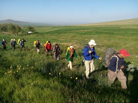 طبق برنامهریزی قبلی روز جمعه 24 اردیبهشت و با حضور کلیه همنوردان ثبت نام کرده در برنامه، ساعت 5:50 دقیقه صبح از میدان شریعتی (محل تجمع) به سمت جاده اراک- شازند با یک دستگاه مینیبوس حرکت میکنیم. با ورود به جاده ازنا و پشت سر گذاشتن گردنه قاقان به سمت جاده فرعی محمودآباد حرکت میکنیم که با عبور از روستاهای محمودآباد، حاجیآباد، دهاحمد و روغنی ساعت 7:10 به چشمهای که مبدا صعود میباشد میرسیم. بعد از صرف صبحانه و آماده شدن نفرات ساعت 7:45 حرکت به سمت قله شروع میشود. سرتاسر مسیر دشت، کوهپایهها و دامنههای اطراف کوه پوشیده از گلها، گیاهان و علفهای مختلف بهاری همچون ریواس، کُرک خرگوش، سوسنبر، مرزن گوش و ...میباشد، که با توجه به بارندگی روز قبل و هوای مطبوع اردیبهشت ماه لذت صعود را دوچندان میکند.